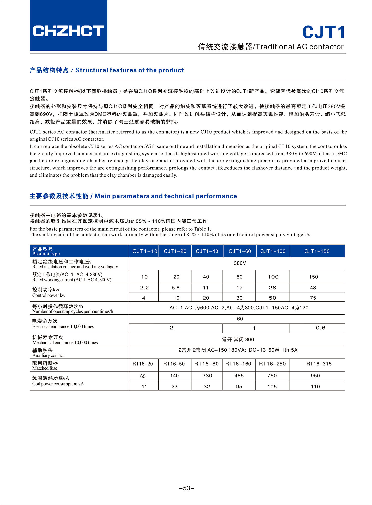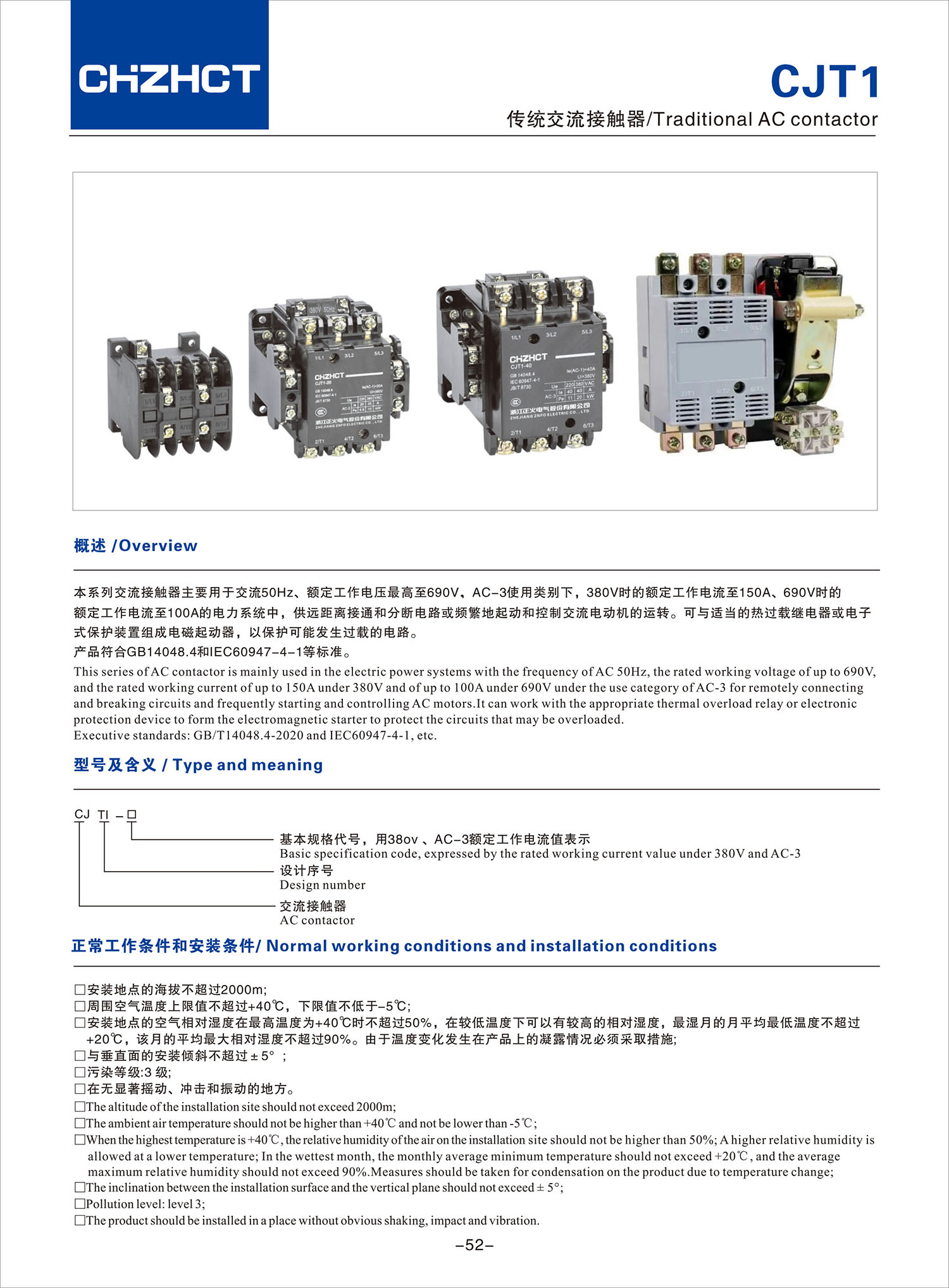 CJT1传统交流接触器产品说明书