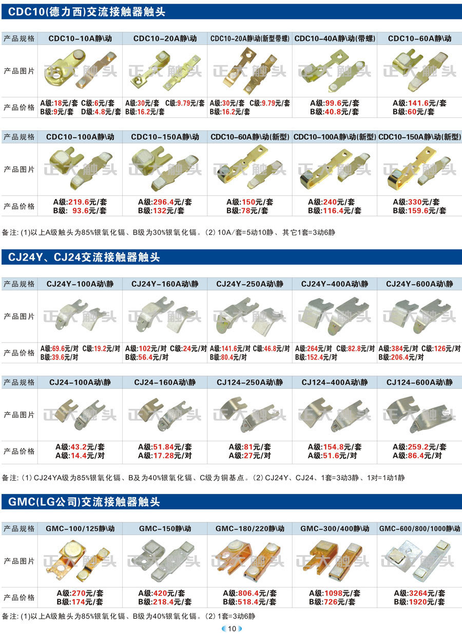 CDC10、CJ24Y、CJ24、GMC(LG公司)交流接触器触头