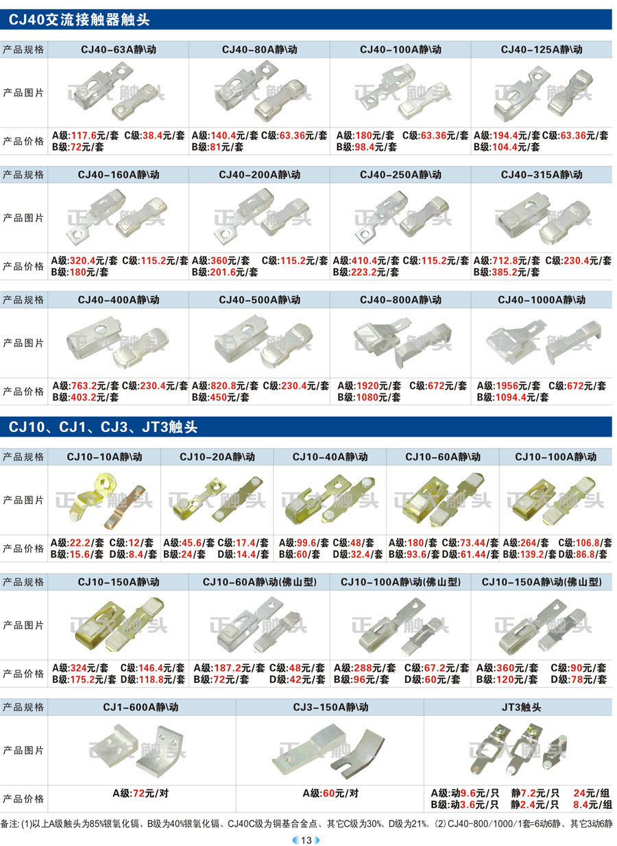 CJ40、CJ10、CJ1、CJ3、JT3触头