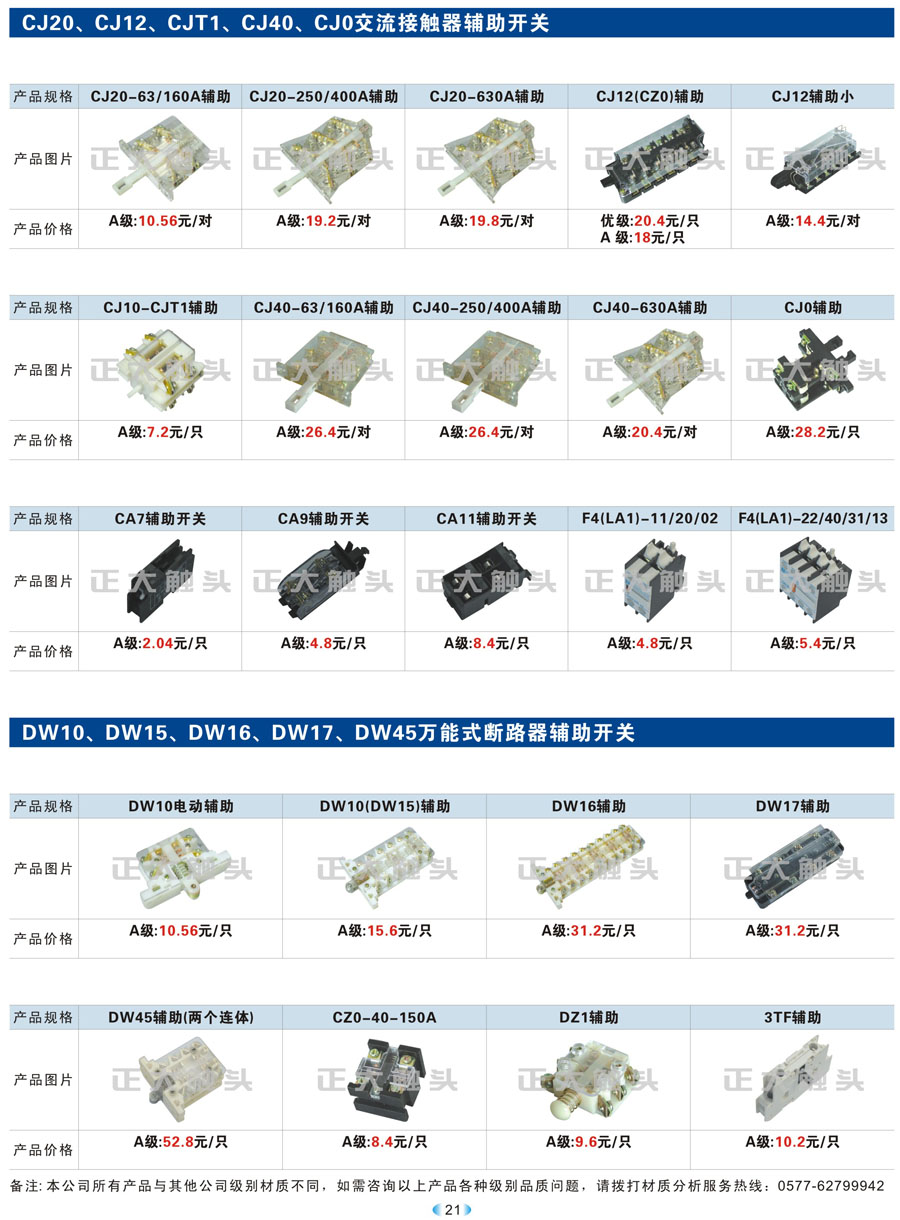 CJ20、CJ12、CJT1、CJ40、CJ0、DW10、DW15、DW16、DW17、DW45辅助开关