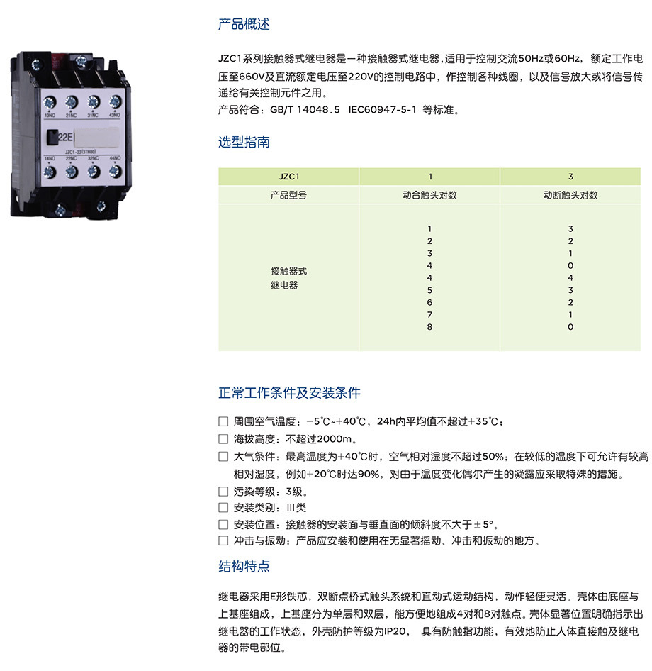 JZC1 系列接触器式继电器_接触式继电器_继电器_工业控制与保护_产品中心_galaxy银河电气股份有限公司