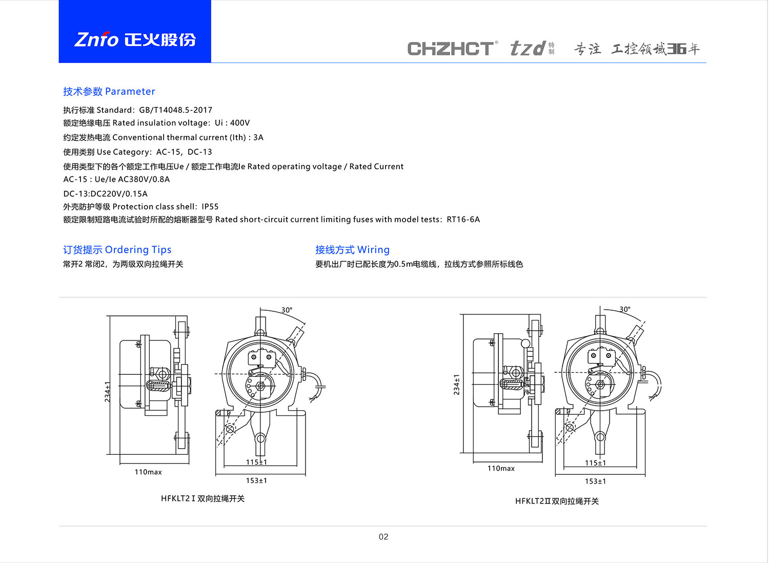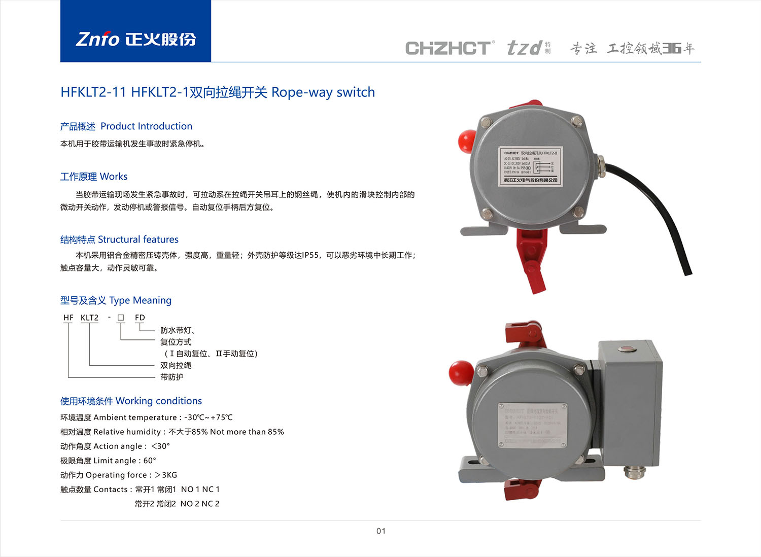 HFKLT2双向拉绳开关 _拉绳开关_行程/微动/跑偏/拉绳/超速_工业控制与保护_产品中心_galaxy银河电气股份有限公司
