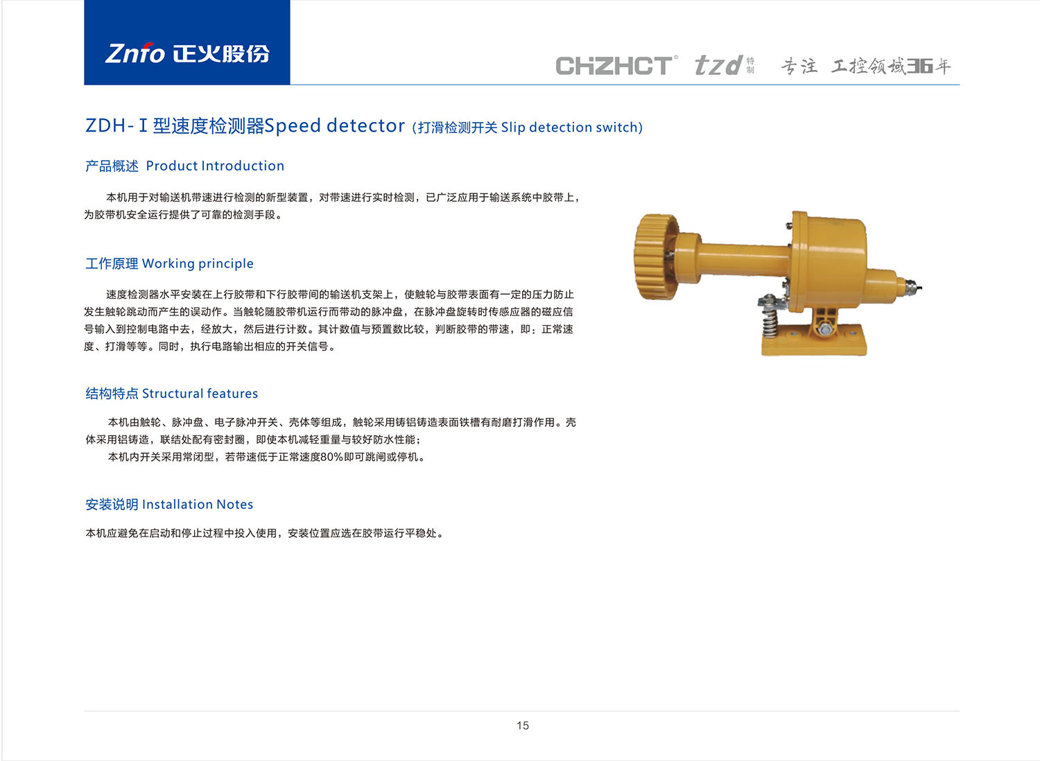 ZDH-Ⅰ型速度检测器产品说明书