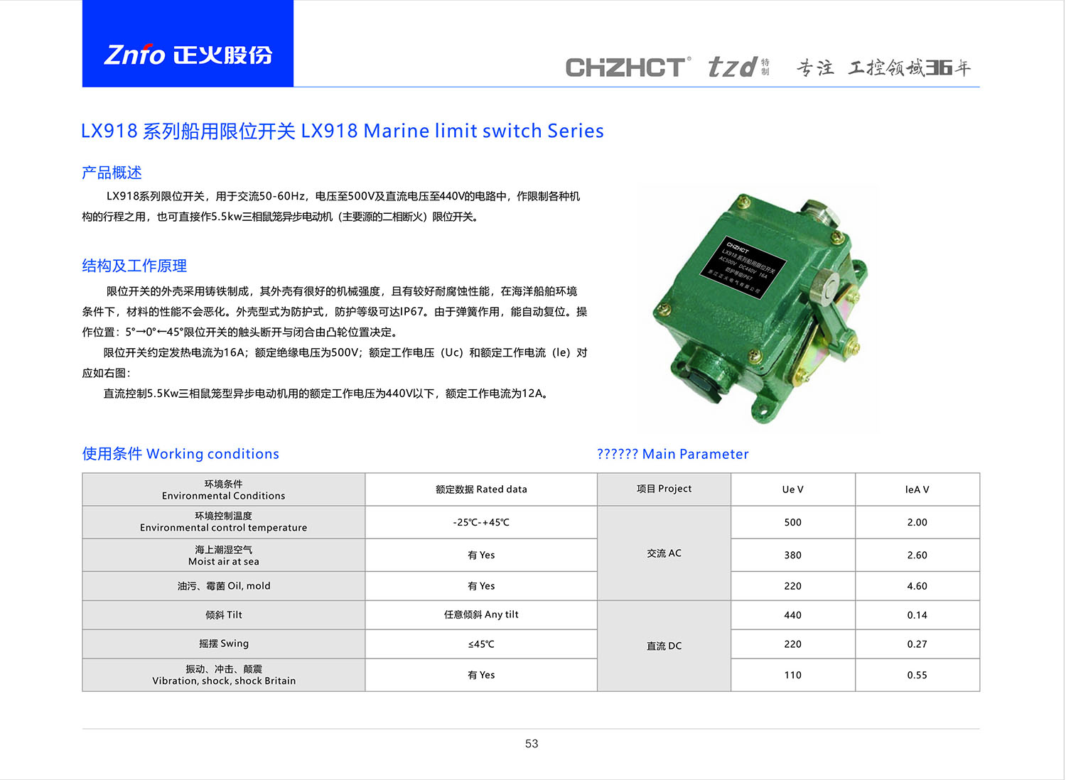 LX918 系列船用限位开关产品说明书