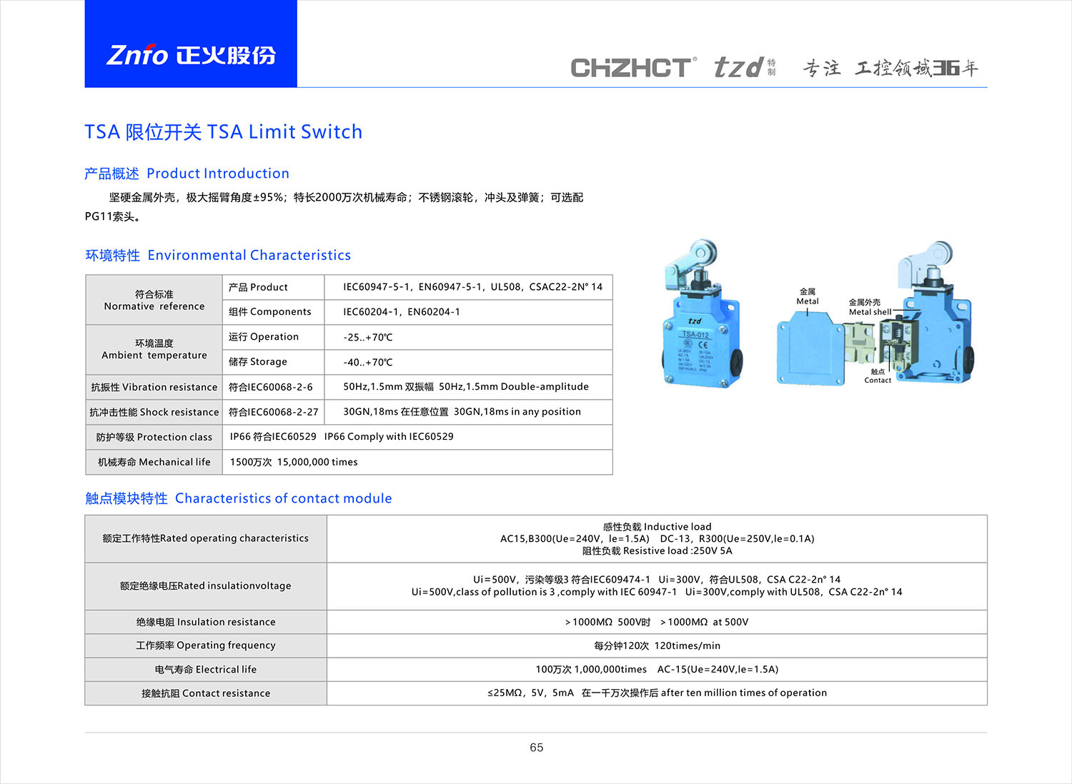 TSA 限位开关 _行程/限位开关_行程/微动/跑偏/拉绳/超速_工业控制与保护_产品中心_galaxy银河电气股份有限公司