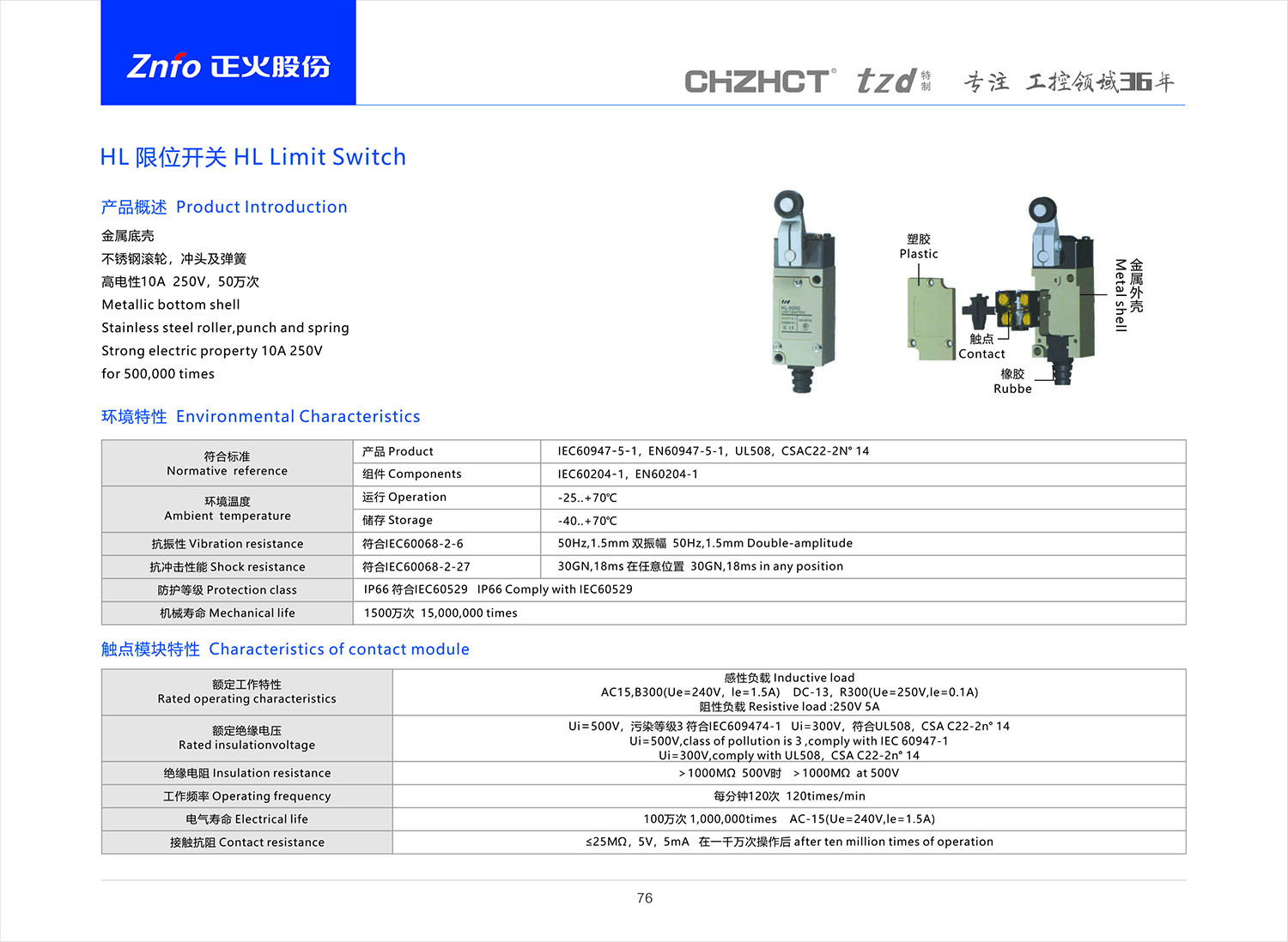 HL 限位开关_行程/限位开关_行程/微动/跑偏/拉绳/超速_工业控制与保护_产品中心_galaxy银河电气股份有限公司